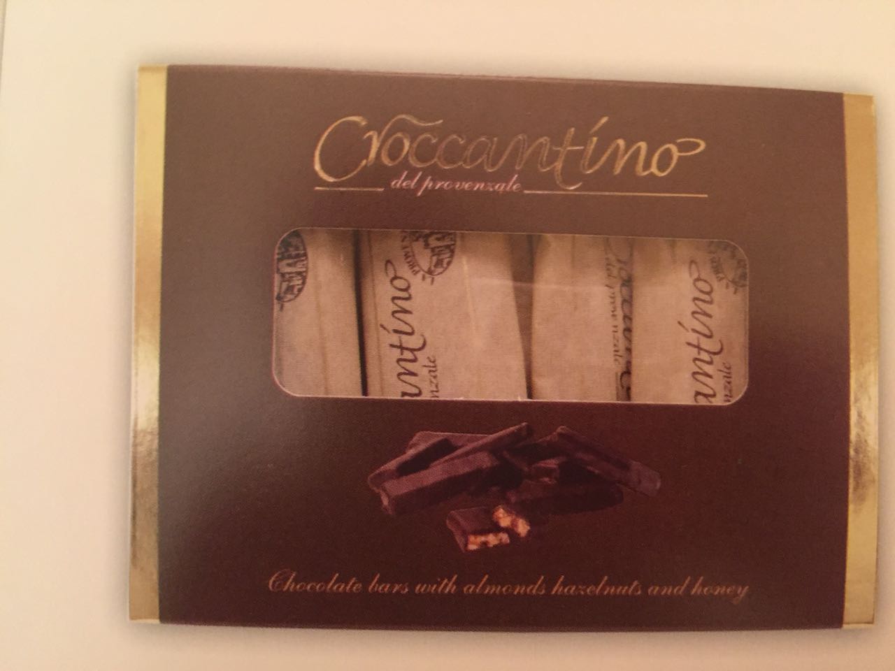 Il croccantino è lo chef d'oeuvre della nostra tradizione. L'impasto interno è realizzato con nocciole e mandorle tritate e caramellate con zucchero e miele,il tutto ricoperto da uno strato finissimo di cioccolato fondente.